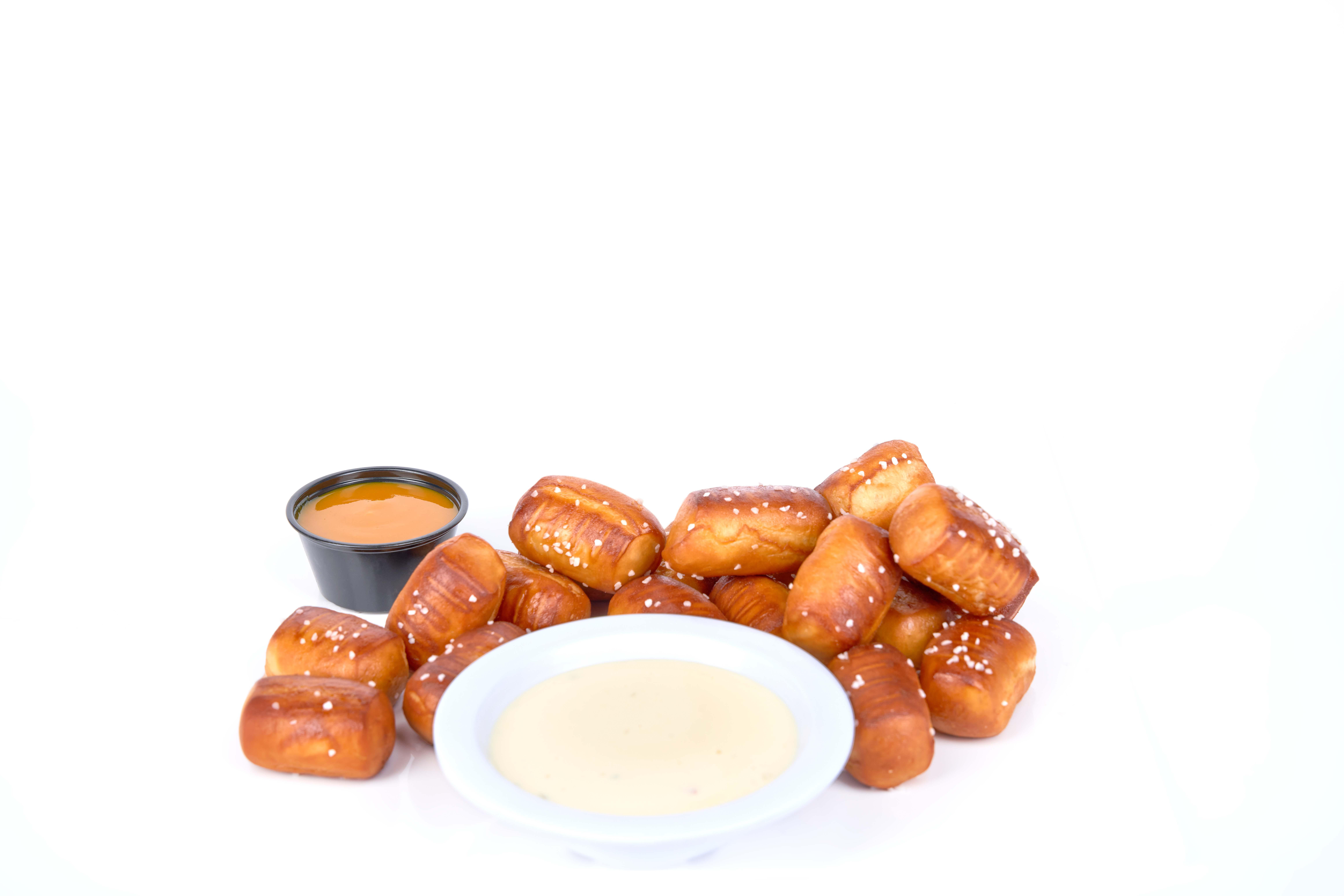 Warm pretzel bites served with queso & our Sweet 'N' Sassy sauce for dipping.
