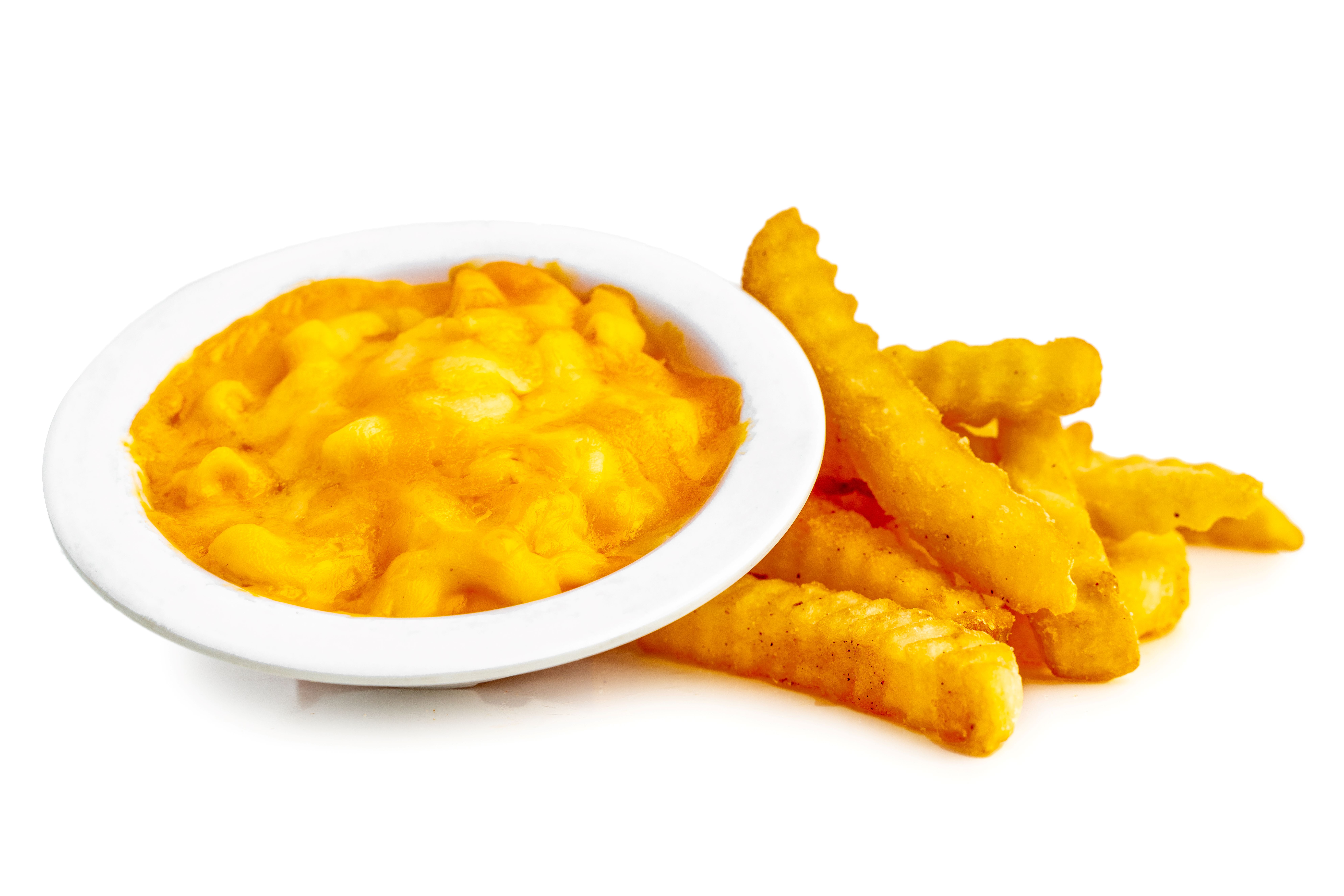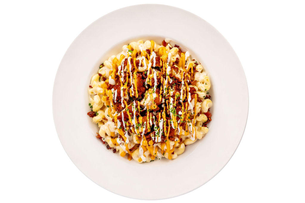 White-cheddar mac 'n' cheese with grilled or Double Dipped fried chicken, bacon & chives drizzled with any Signature Sauce
