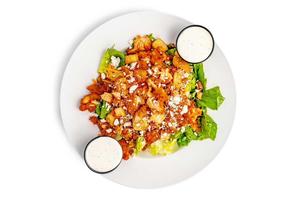 Our fresh grilled or fried chicken tossed in one of our Signature Sauces with lettuce, tomato, and shredded cheese served with your choice of housemade ranch of blue cheese dressing