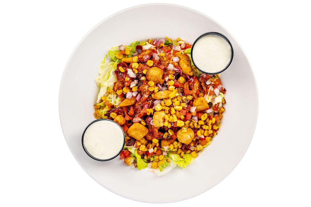 Grilled or hand-breaded chicken tossed in Hickory or Honey BBQ with bacon, guacamole, tomato, onion