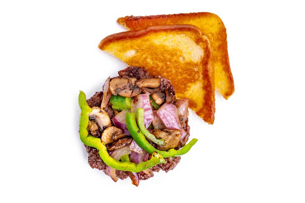 Our hand-pattied burger smothered in your choice of onions, peppers, and mushrooms. Served with two main sides and Texas toast