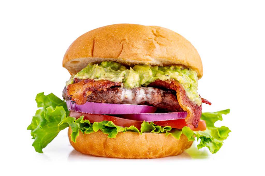 Topped with Pepper Jack cheese, Applewood-smoked bacon, and guacamole