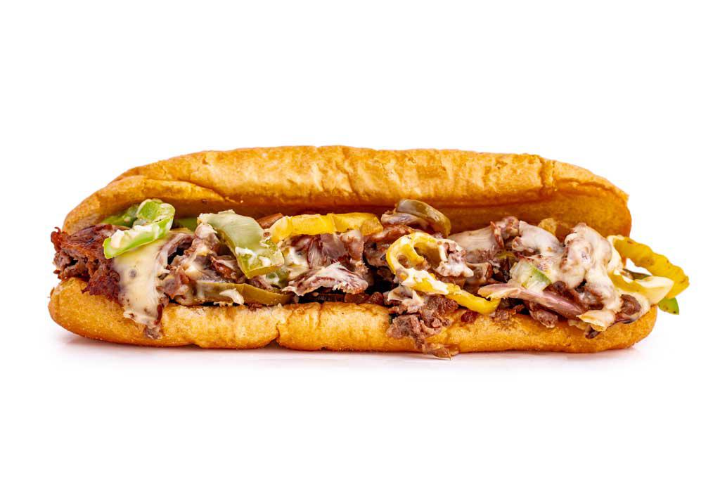 Thinly sliced grilled steak on a hearth-baked hoagie bun, covered in your choice of cheese, onions, peppers, mushrooms, jalapenos, or banana peppers.