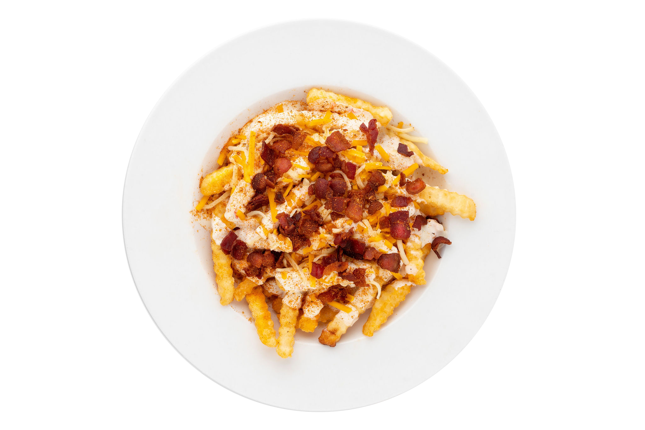 A mountain of our fries with Cajun seasoning, covered with bacon, queso and a blend of cheese and served with your choice of ranch or sour cream.