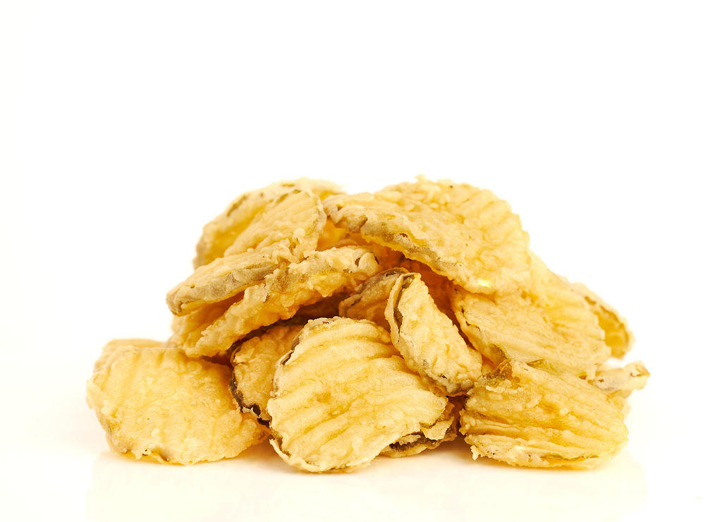 Hand-breaded pickle chips served with ranch or blue cheese.