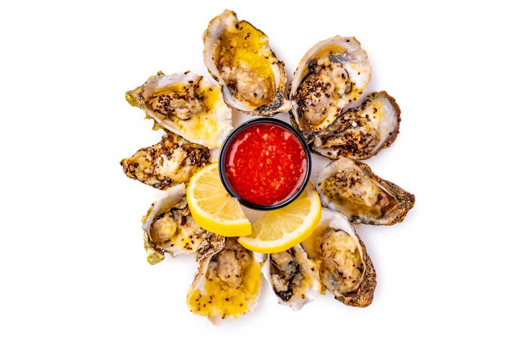 Butter & Cajun seasoning. Oysters come in a half dozen or dozen.