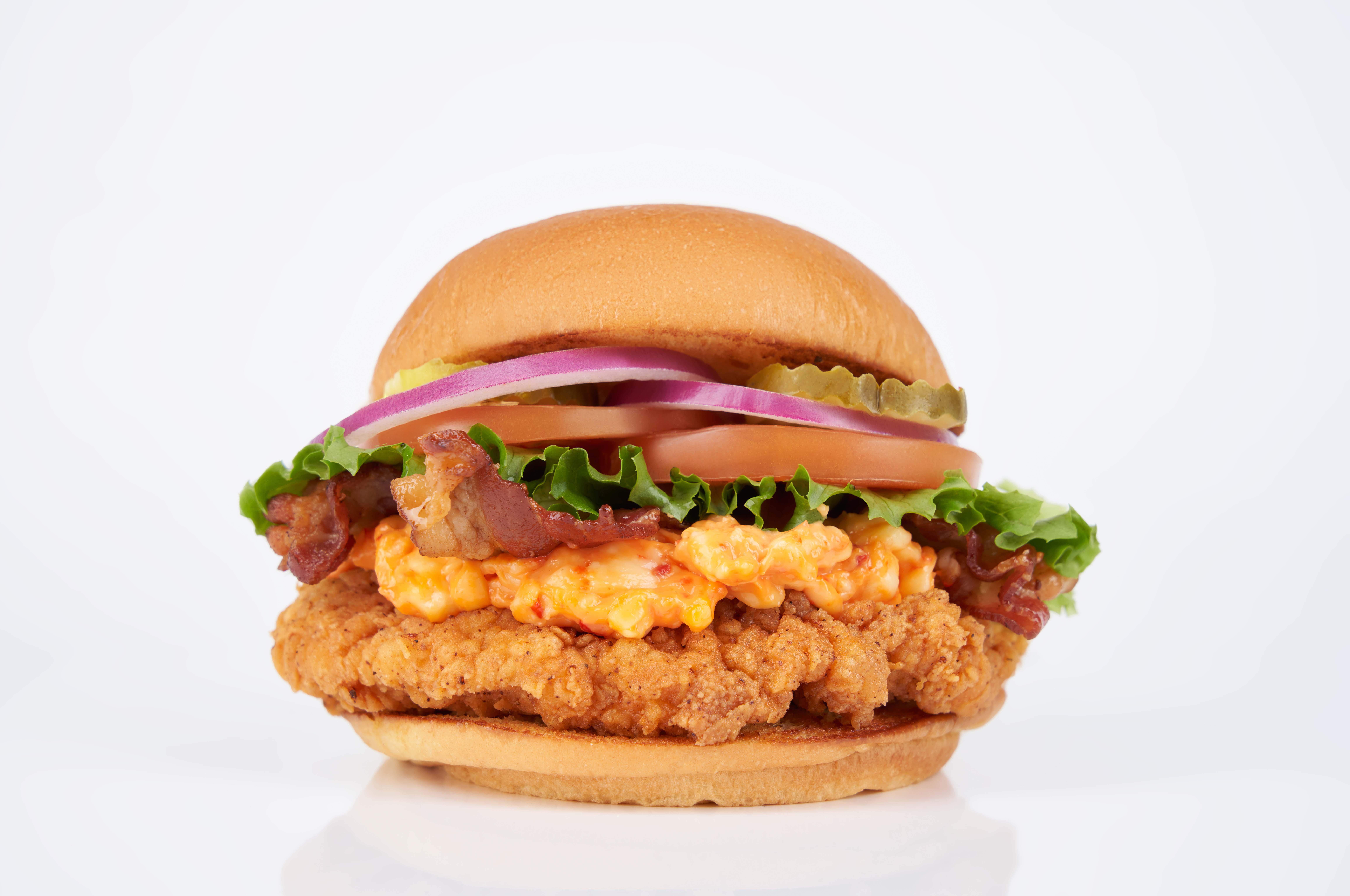 Grilled or hand-breaded chicken, pimento cheese, smoked bacon, lettuce, tomato, onion & pickle served on a Martin's Potato Bun.
